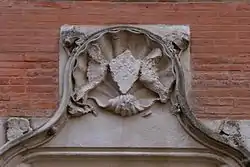 La porte est le seul élément conservé et visible aujourd'hui de l'hôtel. Elle est surmontée d'un écusson, martelé à la Révolution, soutenu par deux lions, eux aussi mutilés. Le blason représentait, autrefois, un chevron, chargé de trois coquilles, accompagné de trois étoiles. Il est lui-même posé dans une grande coquille[5].