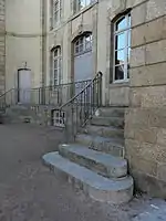 Il s'agit de l'ancienne façade principale de l'Hôtel de La Belinay, reléguée à un rôle subalterne lors de l'affectation du bâtiment au Ministère de la Justice, cette dernière bouleversant la distribution interne et affectant par la même approche des lieux et déambulations. Ainsi le visiteur n'accède-t-il plus directement à l'étage noble mais passe dans un mouvement ascensionnel des anciens offices aux espaces dédiés à l'exercice de la Justice.