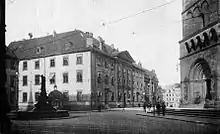 De 1909 à 1913, un nouvel hôtel de ville est bâti sur le terrain de la Stadthaus, à côté de l'ancien, par Gabriel von Seidl (1909-1913)[1]. Les trois façades vers le Grasmarkt (« marché aux herbes ») et le Domshof (« cour de la cathédrale », il ne s'agissait pas d'un cloître) sont dessinées en style néo-Renaissance, la quatrième en style art nouveau.