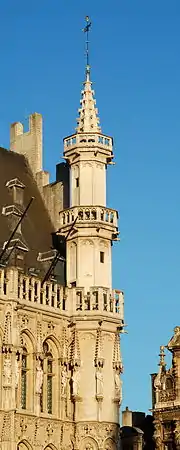 - l'hôtel de ville de style gothique construit au XVe siècle le long de la Grand-Place (avec un retour le long de la rue Charles Buls);