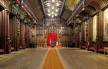 - l'aile droite, dont la première pierre fut posée par Charles le Téméraire, fut édifiée de 1444 à 1449 et serait l'œuvre de Guillaume de Vogel[1] qui était l'architecte de la ville de Bruxelles en 1452 et qui fut l'auteur de la Magna Aula du palais de Philippe le Bon;