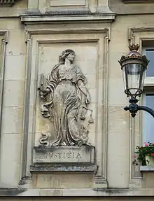Une première extension est édifiée à droite du bâtiment médiéval vers 1650. Sur sa façade, le sculpteur baroque Gilles Guérin, auteur de la statue du Louis XIV du bâtiment central, réalisa également pour 500 francs "la Justice" en s'inspirant des œuvres de son maître présumé Jacques Sarrazin[3].