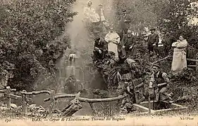 La particularité, qui a fait la renommée des Baignots, est la création d'un parc naturel composé de plantes exotiques, situé au pied de la colline où les sources débitent une eau de l'ordre de 64 °C. Des forages habilement habillés de rocailles donnent l'impression de véritables geysers. Au début du XXe siècle, le parc des Baignots avec son café et ses geysers se présente comme la promenade la plus agréable de la « première cité thermale de France ».