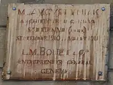 On distingue trois parties dans la construction, à droite le bâtiment de l'architecte genevois Célestin Longerey (1861-1917), le plus ancien. Une partie centrale à ossature métallique, construite ensuite toujours par Longerey et enfin la partie à gauche construite en 1911, plus majestueuse et qui reprend, dans un style Art nouveau les éléments de la partie droite, c'est l'architecte Martin Augustyniak (1877-1934) qui réalise cette partie en essayant de donner une unité à l'ensemble[1].