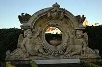 Hôtel du Palais vu depuis la ville, à l'approche du casino municipal. En bas à gauche, entrée de la piscine.