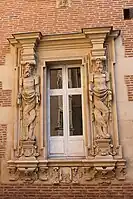 Élément en pierre blanche se détachant sur le nu du mur de brique rouge, la fenêtre était à Toulouse l'emplacement privilégié du décor mettant en valeur la réussite et le rang du propriétaire. L'hôtel du Vieux-Raisin est particulièrement représentatif du soin porté par les commanditaires de la Renaissance au décor des fenêtres. Celles édifiées par Béringuier Maynier (rue Ozenne et sur la première travée des ailes de la cour) sont magnifiées de pilastres, de candélabres et de rinceaux. Rue du Languedoc, une fenêtre due à Jean Burnet entre 1547 et 1555 est inspirée d'une gravure de Jacques Androuet du Cerceau, adaptée avec une simplification de la partie haute et un enrichissement du décor par des figures humaines et hybrides[5].