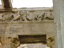 La frise ouest, l'opisthodome, montre la bataille des Centaures et des Lapithes. Ne sont pas présents les femmes lapithes et les meubles qui désignent normalement le banquet des noces de Pirithoos.