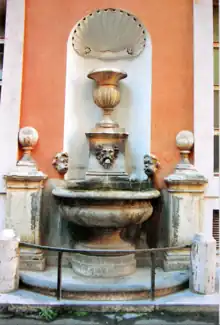 À l'intérieur de la cour, les deux fontaines datent aussi du XVIe siècle : l'une est peut-être attribuable au fontainier Giovanni Antonio Nigrone, dans laquelle l'eau coulait d'une tête de lion entourée de deux angelots ; la seconde, nommée del Mascherone, est probablement liée au raccordement à l'Acqua Vergine dans la seconde moitié du siècle[42].