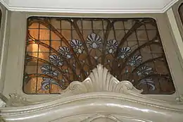 ![]() Fleuron en stuc et vitrail surmontant la porte du Museum Café |