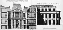 Le bâtiment se compose d'un rez-de-chaussée affecté aux communs, et de deux étages d'habitation, le tout autour d'une cour. Le premier étage comporte une suite de réceptions et le second les appartements[27].