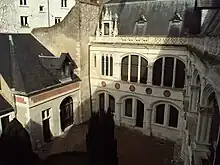 Si les galeries et les ornements de la cour sont d'origine, les parties hautes du bâtiment sont par contre une création de Lafargue. Le garde-corps ajouré s'inspire ainsi de l'aile François Ier du château de Blois. Quant aux lucarnes, il est fort peu probable qu'il y en ait eu sur le bâtiment avant la campagne de restauration de la fin du XIXe siècle[19].