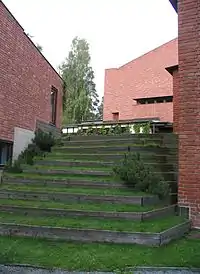 Aalto tira parti du terrain en pente pour disposer les différents éléments du programme autour d'une cour interne carrée surélevée dont les remblais sont retenus par les murs du rez-de-chaussée en contrebas. Alto voyait cette placette à l'égal d'une curia romaine, la place où les sénateurs romains se réunissaient, mais il avait aussi en tête le Campo de Sienne où tous les citoyens de la ville pouvaient se rassembler. Mais ce type de cour, bien délimitée tout en étant ouverte sur l'extérieur, possède aussi un caractère finlandais puisque la configuration est très semblable aux fermes finlandaises. Il s'agirait alors d'un élément de composition vernaculaire réactualisé à l'époque moderne, mais Aalto ne l'a jamais évoqué.