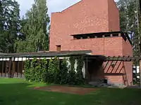 Aalto s'est donné une palette de matériaux assez restreinte : la brique domine, aussi bien à l'extérieur qu'à l'intérieur, mais il y a aussi de la pierre, du bois et du cuivre. L'ensemble est posé sur une épaisse semelle de béton pour le protéger de la neige. Les briques sont disposées avec un léger angle par rapport à celle du lit juste inférieur : les murs ne sont pas lisses, ils permettent un effet d'accroche de la lumière. L'utilisation de la brique pour ce type de programme était assez inhabituelle à cette époque en Finlande. Elle était réservée à des bâtiments industriels comme l'usine de Enso-Gutzeit non loin. Aalto utilisa les briques pour créer des effets de surface plus que pour des effets architectoniques.