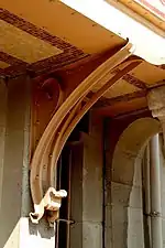 Très étroite, elle est ornée d'un oriel percé d'un triplet de baies à arc ogival surbaissé, et surmonté d'un balcon.