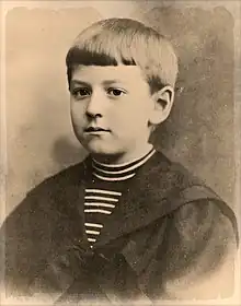 Lovecraft naît le , à 9h du matin, dans la résidence familiale sise au 194 Angell Street[n 1] à Providence dans l'État du Rhode Island[9] (la maison sera détruite en 1961). Il est le fils unique de Winfield Scott Lovecraft, un commerçant ambulant qui vend des bijoux et des métaux précieux, et de Sarah Susan Phillips Lovecraft dont la généalogie, aux États-Unis, remonte à l'époque de la colonie de la baie du Massachusetts, en 1630. Ses parents se sont mariés alors qu'ils avaient plus de trente ans, ce qui est tardif à l'époque. En 1893, alors que le petit Lovecraft n'a que trois ans, son père, en voyage d'affaires, est atteint de démence dans un hôtel de Chicago. Ramené à Providence, il est placé au Butler Hospital où il restera jusqu'à sa mort, en 1898. Lovecraft a toujours affirmé que son père était mort des suites d'une paralysie provoquée par une « fatigue nerveuse », mais il est à présent presque certain que la cause de la mort était une paralysie générale[10]. On ne sait pas si le jeune Lovecraft était au courant du mal dont souffrait son père (vraisemblablement la syphilis), mais il est probable que sa mère l'était, ayant même reçu des doses d'arsenic à titre préventif.