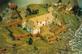 Reproduction de la première habitation lors du tricentenaire de Québec, en 1908. | |||
