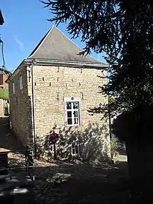 Le bâtiment est érigé en moellons d'arkose, un grès local de teinte jaunâtre. Des traces de martelage sont visibles sur la plupart de ces moellons. Les seuils, linteaux et piédroits sont réalisés en schiste de Recht. La façade arrière ainsi que les deux pignons sont percés par vingt-cinq meurtrières, témoins de la construction d'origine. La toiture à quatre pans est recouverte d'ardoises et percée de deux lucarnes[2].
