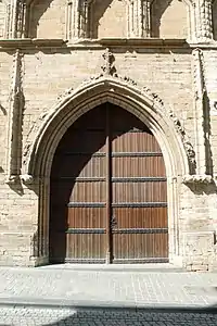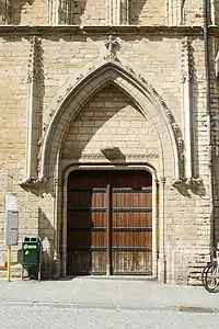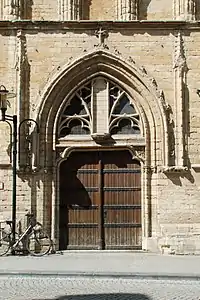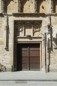 Le rez-de-chaussée gothique est percé de cinq portails : quatre portails ogivaux, tous différents par leur linteau, leurs piédroits, leur tympan et la décoration de leur arc, et un portail rectangulaire surmonté d'un encadrement regroupant trois niches dont les deux extrêmes sont ornées d'un trèfle[3].