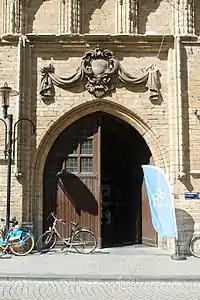 Au-dessus de l'arc du portail central, prend place un grand cartouche de style baroque portant la mention « Sapientia aedificavit sibi domum » (« La sagesse s'est construit une maison »).
