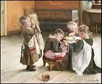 Deux peintures de Hanna Frosterus-Segerstråle : à gauche Lekande barn (Enfants jouant), à droite Méditation |