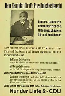 Hans Schlange-Schöningen sur une affiche électorale pour les élections fédérales de 1949.