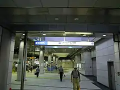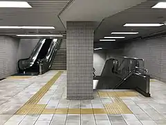 La station dispose de quatre accès dont un principal équipé d'un escalier mécanique. Pour les personnes à la mobilité réduite un parcours spécifiques est signalé avec un ascenseur pour rejoindre le niveau -1 puis un deuxième ascenseur pour rejoindre le quais de la station[2]. La carte ICOCA est possible pour l’accès aux portillon d’accès aux quais.