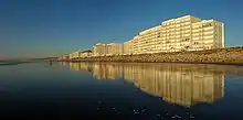 - d'un front de mer de 8 375 mètres[4] avec une digue, des dunes et une plage (allant d'Écault au nord à Dannes au sud) ;
