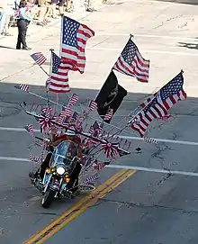En 1917, les États-Unis entrent en guerre en Europe. Les forces armées américaines demandent des motos. Elles en avaient déjà utilisées dans des escarmouches avec Pancho Villa, mais la Première Guerre mondiale est le premier conflit avec une utilisation massive de motos, puisque vingt mille machines y seront affectées dans plusieurs versions, notamment porte-mitrailleuse ou side-car. L'essentiel de ces motos est fourni par Harley qui, pendant la guerre, consacre environ la moitié de sa capacité de production aux modèles destinés à l'armée, dotés du moteur Flat Head de 61 ci (1 000 cm3)[23]. Harley crée en outre un programme de formation de mécaniciens militaires, qui sera ensuite reconverti pour former des civils[25].