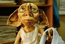 Dobby a été créé par effets spéciaux sur ordinateur. Lorsque les acteurs devaient interagir avec le personnage, ils s’adressaient à une balle fixée à un bâton[7].