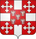 Cette famille portait comme armoiries : De gueules à la croix d’argent accompagnée de quatre croix tréflées du même, sur le tout de gueules à cinq saffres (aiglettes de mer) d’argent en sautoir. Devise : Haut, clairons, pour l'honneur de la maison[1],[2],[3].
