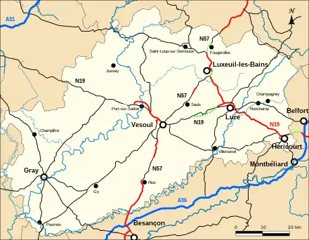 La Haute-Saône (/ot.son/[Note 1]) est un département français appartenant à la région de Bourgogne-Franche-Comté. Il fait partie de la région historique et culturelle de Franche-Comté. L'Insee et La Poste lui attribuent le code 70. La ville la plus peuplée du département est sa préfecture, Vesoul, tandis que la commune la plus étendue est Champlitte avec 129 km2. Le département a la particularité d'avoir 5 pôles urbains que sont Vesoul, Gray, Luxeuil-les-Bains, Lure et Héricourt, tout en possédant un caractère rural permettant le développement de l'écotourisme et du cyclotourisme.