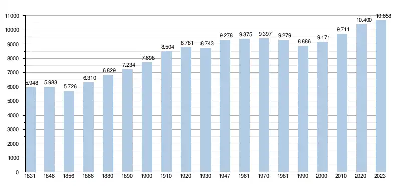 - Source : DGS - Remarque: 1831 jusqu'à 1981=recensement; depuis 1990=nombre d'habitants chaque 1er janvier[7]