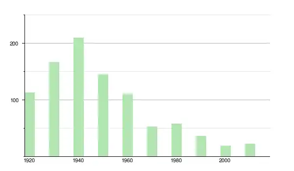 | 1950 | 145 | ▼ −30,95 % | |