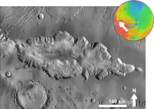 Hebes Chasma est un court segment d'environ 320 km d'extension ouest-est et jusqu'à 130 km de large. Sa direction d'élongation principale, N100°, est parallèle à celle du secteur central des Valles Marineris. Il se prolonge à l'ouest dans l'unité dépressionnaire sud d'Echus Chasma ; à l'est, Ganges Catena (it) est la trace visible du prolongement oriental de la déchirure lithosphérique ; ensemble, ils constituent le graben le plus septentrional du système des Valles Marineris.