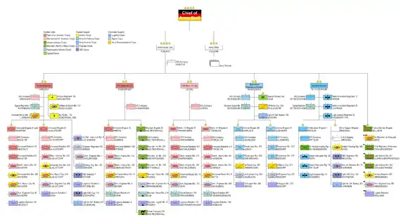 - Éléments allemands de deux bataillons permanents et une compagnie d'état-major