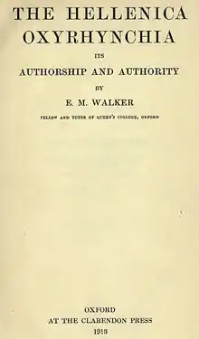 - (la) Arthur S. Hunt et Bernard P. Grenfell (éd.), Hellenica Oxyrhynchia, cum Theopompi et Cratippi fragmentis, recognoverunt brevique adnotatione critica instruxerunt Bernardus P. Grenfell et Arturus S. Hunt. Oxonii : e typographeo Clarendoniano, 1909[]