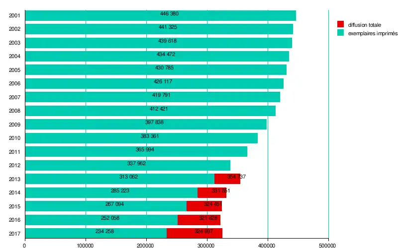 | Diffusion | 365 994 (2011)[2] ex. (2011, 2017) |