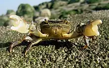 Hemigrapsus sanguineus est un petit crabe originaire d'Asie des côtes rocheuses du Japon et de la Chine.