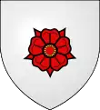 D'argent à la rose de gueules boutonnée d'or[1].