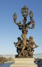 - pont Alexandre-III : Candélabres et Ronde d'amours ou Enfants au candélabre, 1899, bronze[14],[15],[16].