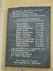 Il est à noter que onze jeunes français, travailleurs déportés, ont été exécutés de la même façon à la prison de Brandebourg-Görden, pour sabotage, le 13 septembre 1944, un mois après l'exécution d'Henri Martin. Une plaque commémorative leur est dédiée à la gare de Brandebourg.