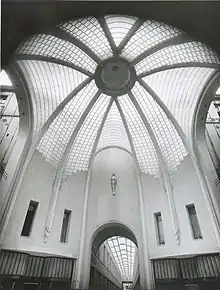 Il faut attendre 1934 pour que Louis Dabin adapte en concertation avec Henri Snyers le passage aux nouvelles exigences commerciales. Un premier projet consiste en la démolition totale du passage dans le but de reconstruire une rue entière sur les idées modernistes radicales expérimentées par Le Corbusier avec les Quartiers Modernes de Frugès[6] à Pessac (1925) et par Mallet-Stevens à Auteuil (1926-27). Louis Dabin et Henri Snyers veulent placer le passage Lemonnier à la tête de la modernité architecturale liégeoise. Finalement, ni l'implantation ni la polyvalence du passage ne seront modifiées. Snyers se charge dans un premier temps de la modernisation de l'entrée du passage côté Vinâve d'Île dès juin 1934. Une deuxième phase se déroule de juin à décembre 1935. Elle concerne la galerie côté Vinâve d'Île et la rotonde. De 1936 à 1939, une dernière phase comprend la transformation de l'entrée côté rue de l'Université, de la galerie attenante et de l'accès à la salle de spectacle La Légia rue Lulay-des-Fèbvres. En bref, les travaux comportent : l'installation d'un nouveau carrelage, la suppression des porches d'entrée avec leurs marches, la transformation des devantures commerciales, la création de nouvelles verrières en pavés de semi-cristal couvrant les galeries, la création d'une coupole rehaussée en béton armé dont le dôme est également en pavés semi-cristal du Val-Saint-Lambert, la rénovation des enduits muraux et des éclairages de nuit (un projet mené avec la société Philips). Seuls le rez-de-chaussée et le premier étage en façade et dans les galeries, recouvrant la zone de chalandise, sont modernisés. Le registre décoratif alterne un modernisme tempéré, au niveau des entrées et des galeries, et un style Art déco au niveau de la rotonde sous forme notamment de volutes peintes. Les statues de Minerve et de Mercure, œuvres de la sculptrice Madeleine Schoofs, dominent deux des arcades en plein cintre de la rotonde. D'autres statues, regardant vers les passages, dominaient les arcs en plein cintre des entrées Université – Vinâve d'Île et de la rotonde. L'ensemble joue avec subtilité du contraste de l'horizontalité des passages et de la verticalité des parties néoclassiques, notamment des portiques d'accès à la rotonde. Les passages jouissent d'une dynamique esthétique avec les longues lignes de fuite matérialisées par de légères ornières disposées au niveau du premier étage et par la composition de la verrière formée de pavés rectangulaires. L'éclairage féerique et un pavage hexagonal avenant incitent le chaland à pénétrer dans les galeries.