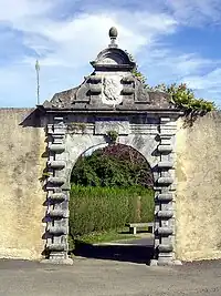 - Panneau d'information de la porte de l'ancienne abbaye laïque d'Aramits