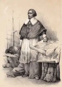 Portrait vers 1638-1642, avec une représentation en arrière-plan de l'un de ses combats navals | ||||||||
