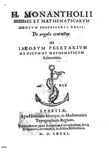 - De Angulo contactus. Ad Jacobum Peletarium... admonitio chez Jamet Mettayer en 1581