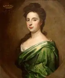 - Le , Angelica Magdalena (décédée le ), fille de Georges de Pellissary, trésorier général des galères de Louis XIV, et veuve de Philip Wharton d’Edlington, Yorkshire, dont il a trois fils (deux qui sont morts avant leur père) et une fille[1]. Le fils survivant est Frederick St John, 2e vicomte St John (environ 1695-1749).