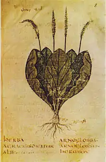 | 97 | herba lingua canis | Plantago lanceolata, Cynoglossum creticum, Cynoglossum officinale |