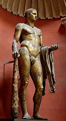 La sculpture, légèrement plus grande que nature, d'une hauteur de 2,41 m, est une œuvre de l'époque hellénistique du IIe siècle av. J.-C., basée sur les canons de proportions établies par Lysippe au début du IVe siècle av. J.-C. La finesse de la tête est soulignée par des cheveux courts d'athlète. Les muscles de la sculpture sont exagérés et la tête est proportionnellement plus petite par rapport au reste du corps.