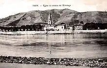 Vignes à Tain-l'Hermitage surplombant le Rhône. | |