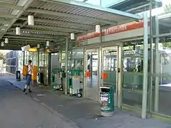 Située au n°13 de la Hiihtomäentie Skidbacksvägen[3], elle dispose de deux accès à un hall principal et un accès à un hall secondaire, de billetterie et contrôle situés au niveau O. Des escaliers mécaniques et des ascenseurs, pour l'accessibilité des personnes à la mobilité réduite, permettent les liaisons avec le niveau -1, où se situent les quais de la station[2].